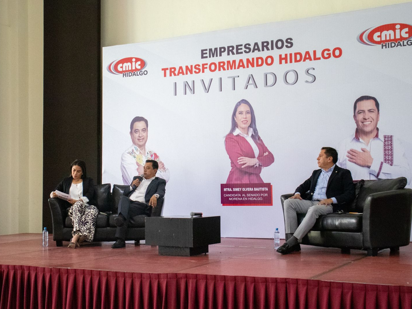La Cámara Mexicana de la Industria de la Construcción (CMIC) en Hidalgo, organizo el foro Empresarios Transformando Hidalgo a fin de escuchar las propuestas de Simey Olvera, Ricardo Crespo y Andrés Velázquez, candidatos de Morena que aspiran a ser parte del Congreso de la Unión y al Congreso local.