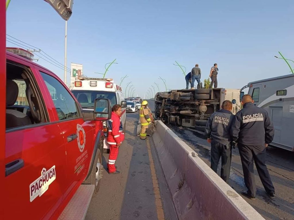 Al lugar de los hechos, sobre el puente que se ubica frente a las instalaciones estatales del Partido Revolucionario Institucional (PRI), arribaron elemento de Protección Civil municipal para realizar acciones preventivas debido al derrame de materiales combustibles, así como auxiliar a los tripulantes del vehículo pesado.