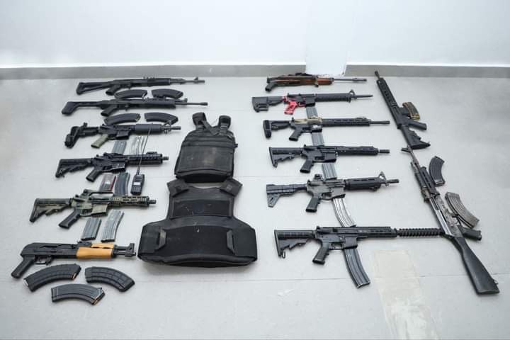 Aseguran 24 armas, una de oro, camioneta blindada y cocaína a Los Cenobios