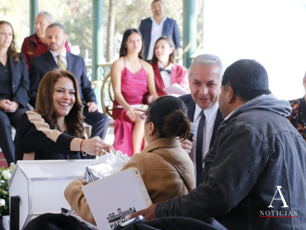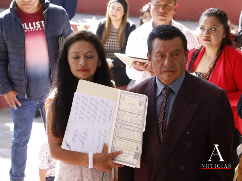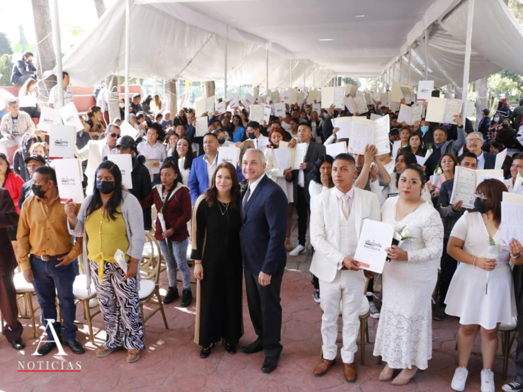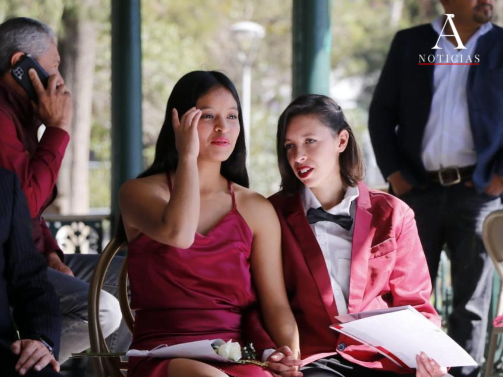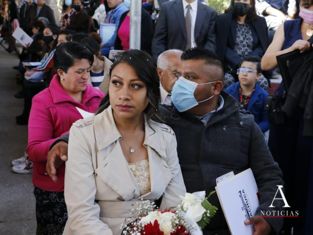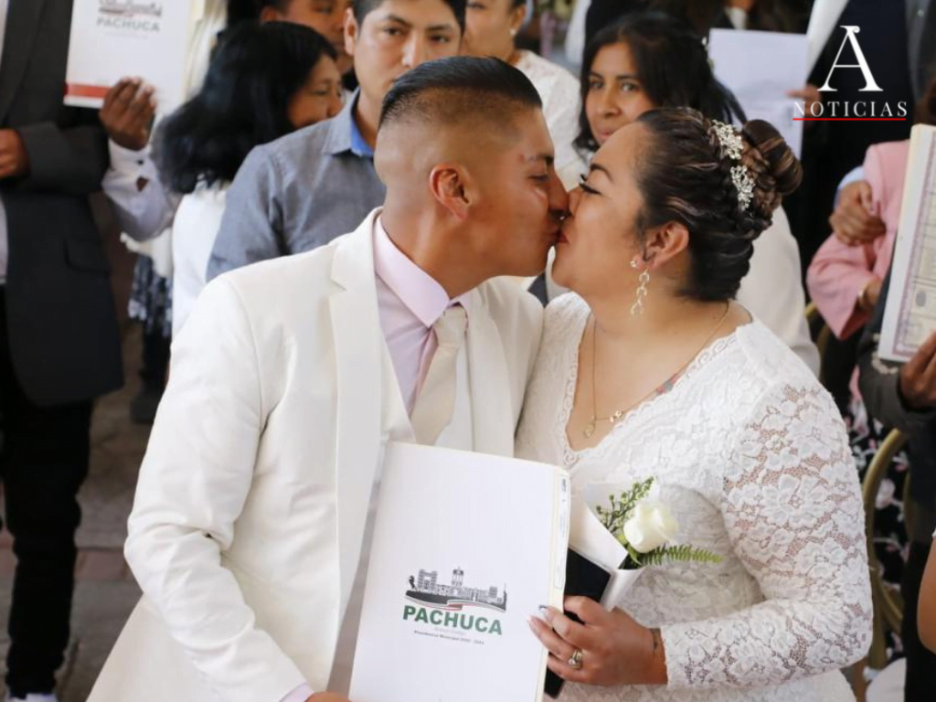 Un grupo de 171 parejas contrajeron matrimonio esta mañana, es una boda comunitaria efectuada en el parque Hidalgo de Pachuca, en el Día del Amor y la Amistad. Entre los contrayentes se encuentra una pareja LGTB+.
