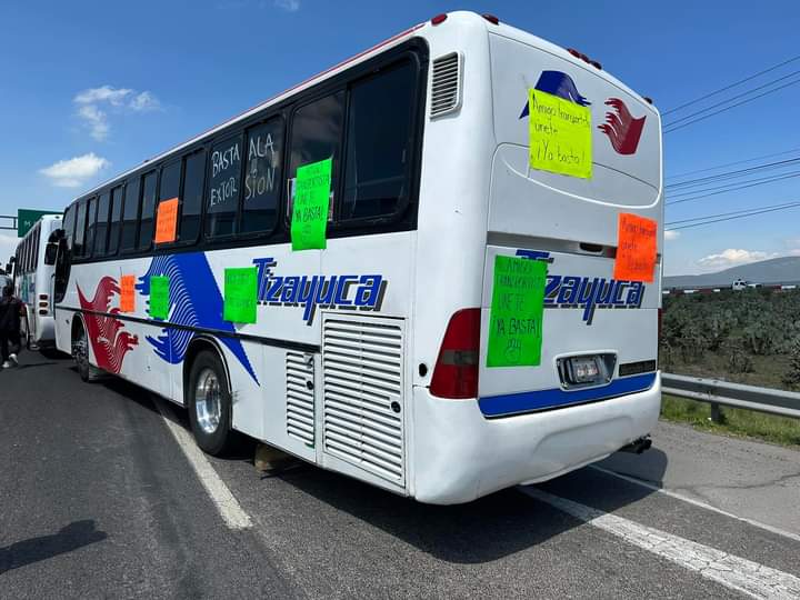 «Ahorita ya estamos cansados de asesinatos, extorsión, tenemos que pagar para poder trabajar nosotros, ya no salimos con la misma seguridad de ir a trabajar y traer el pan de cada día para la casa, ya no hay esa seguridad», dijo uno de los integrantes del gremio de transportistas que bloquearon este día la vía México-Pachuca.